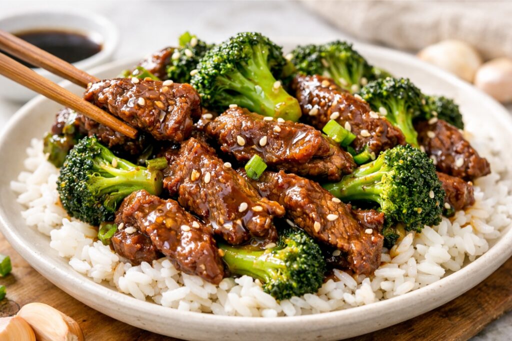 The magic starts with Tender Beef And Broccoli, cooked quickly in a hot pan so every bite stays juicy and flavorful. Then comes the real star of the show: a rich, glossy Easy Beef And Broccoli Sauce that coats every piece perfectly. Sweet, savory, garlicky, and just a little irresistible—basically everything a good stir-fry sauce should be. For Your Information: homemade sauce often tastes better because you control the flavor, salt, and sweetness.