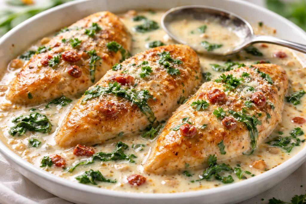 There’s something incredibly comforting about a skillet of creamy garlic chicken bubbling away on the stove. It’s the kind of dinner that feels restaurant-worthy, yet comes together faster than takeout. Tender, golden-seared chicken wrapped in a silky garlic cream sauce — this is the weeknight hero recipe you’ll come back to again and again.