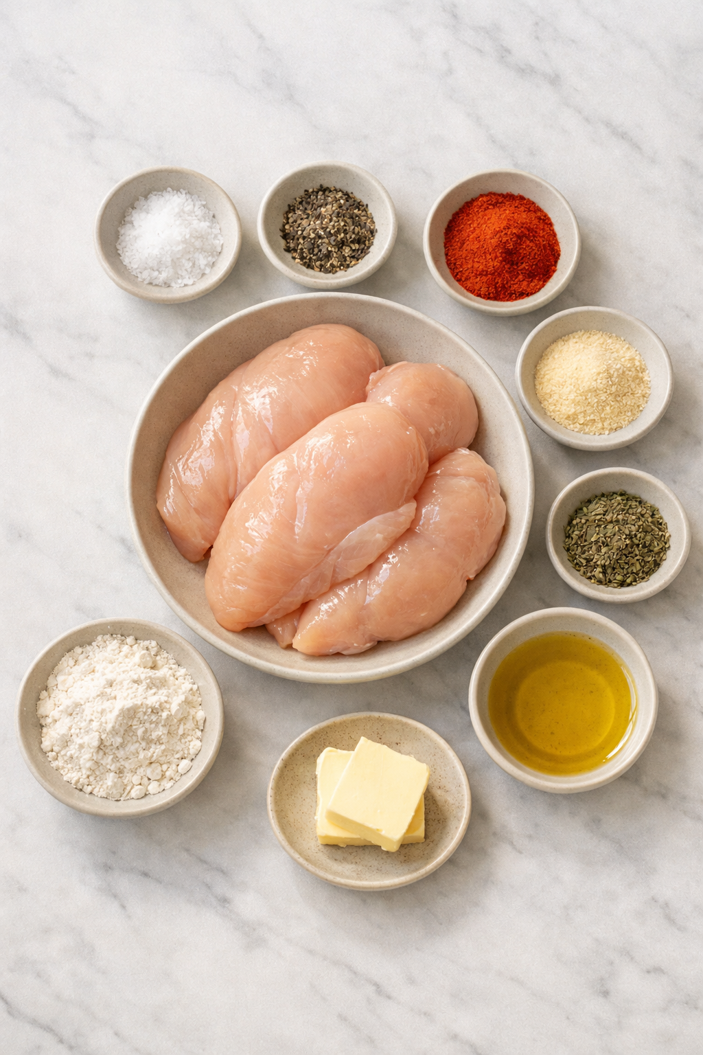 Heat olive oil and butter in a large skillet over medium heat. Add the chicken and cook for about 5–6 minutes, turning once. Cook until golden and just cooked through. Avoid very high heat to prevent burning.