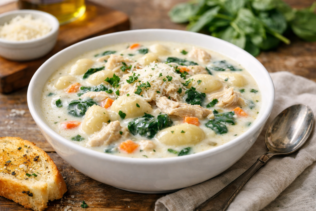 Then there’s the copycat magic. This homemade Olive Garden Chicken Gnocchi version gives you all the flavor you want, but you control the ingredients, the portion size, and the amount of chicken. More chicken? Go for it. More gnocchi? Obviously. That’s the beauty of making your own Chicken Gnocchi Soup at home—you get comfort food exactly how you like it.