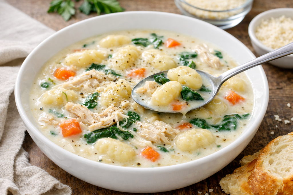 IMO, that’s why this recipe works so well for busy weeknights, lazy weekends, or any evening that needs a little edible therapy. Keep the broth creamy, don’t overcook the gnocchi, and serve it hot. Simple moves, huge payoff. Because when a soup tastes this good, bland dinners should probably feel a little embarrassed.